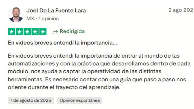 También me parece muy potente que la formación esté pensada para dar una salida profesional clara. Si tienes claro que quieres especializarte en automatización, esta formación te lleva directo al grano.